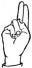 На ћирилици написано ИВА БОШЊАКОВИЋ састоји се из 13 слова [?]. Исписано ћириличном једноручном азбуком за глувонеме: